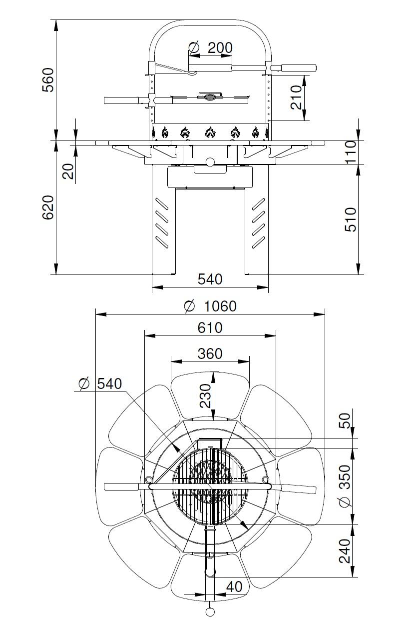 ✔ Diagonale des Grillkörpers - 540 mm